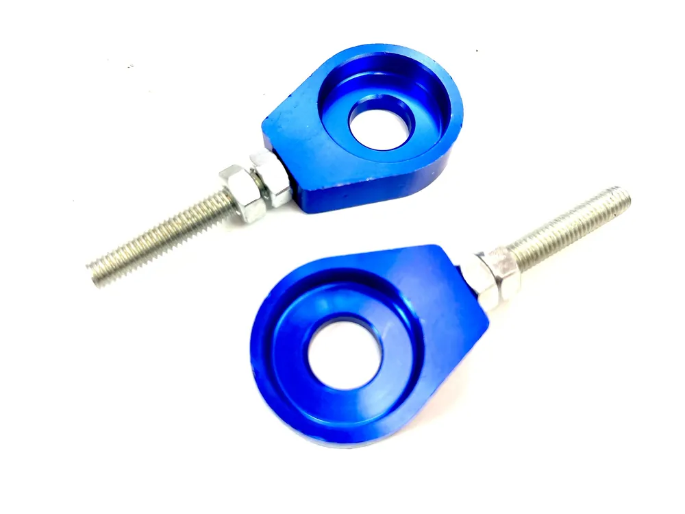 2 Kettenspanner blau eloxiert für Mofa und Moped Abverkauf