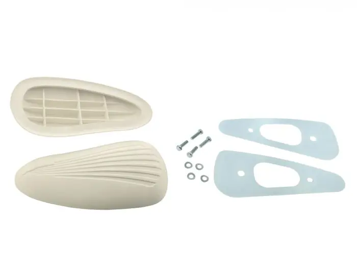 Neues Set Kniekissen mit Halteblech für den Kraftstoffbehälter passend für Simson AWO Sport. Die Lieferung erfolgt inklusive Schrauben und Scheiben zur Befestigung der Bleche am Tank. Die Kniegummis sind in elfenbein, cremefarben.