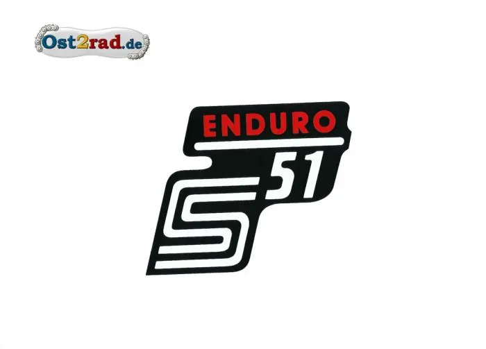 Neuer Aufkleber für den Seitendeckel S51 mit der Aufschrift „Enduro“ in der Farbe rot.