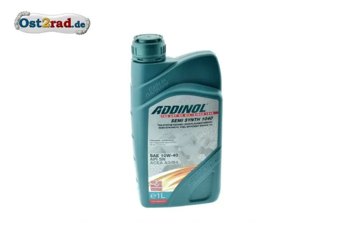 ADDINOL SAE 10W- 40 SEMI SYNTH MV 1047. Teilsynthetisches Leichtlauföl für PKW. Kraftstoffsparendes Leichtlauföl, sehr gutes Kaltstartverhalten, verhindert Schlammbildung, bietet sicheren Verschleiß- und Korrosionsschutz und Reduzierung des Ölverbrauchs. Entwickelt für moderne, leistungsgesteigerte Benzin- und Dieselmotoren. Made in Germany. Ein Kanister enthält 1 Liter.