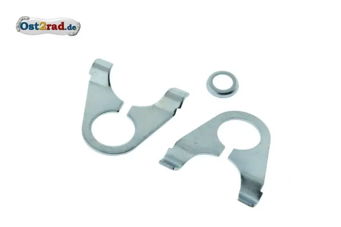 Set Klemmschelle, passend für Rückspiegel aller MZ der TS Reihe TS125, TS150, TS250, TS250/1. Nachbau der originalen Spiegelhalterung auf den Lenker mit 22mm Durchmesser, verzinkt.