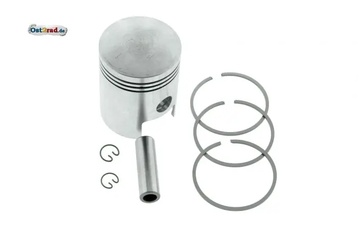 Ein Set Kolben, bestehend aus Kolben, 2 Stück Drahtsprengring, Kolbenbolzen und 3 Stück Kolbenringe. Passend für MZ der Typen ETZ 250 und 251.