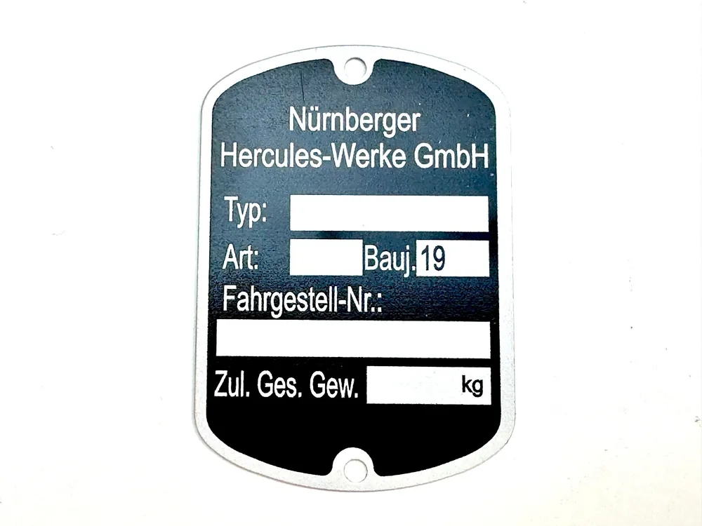 Kostenloser Rückversand Typenschild Plakette Hercules Mofa Prima Moped Optima Rahmenplakette