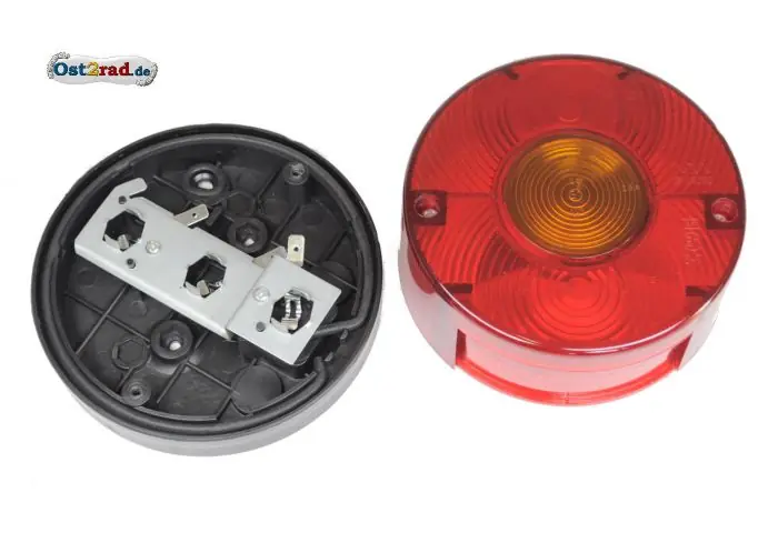Komplette Rückleuchte, passend für viele Anhänger, PKW, LKW, Traktor ZT300 und Bagger mit diesem runden Rücklicht, Durchmesser ca. 130mm. Komplett mit Kappe, Unterteil, Fassungen und Dichtring, inklusive Blinker. Ohne Leuchtmittel und Kennzeichenbeleuchtung. Zugelassen im öffentlichem Straßenverkehr. Neuteil.