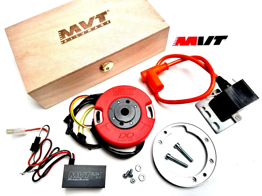 Im Gegensatz zu anderen Anbietern von Innenrotorzündanlagen, welche meist nur für den Rennsport konzipiert sind, hat der spanische Hersteller MVT eine Licht-/Ladespule integriert. Das bedeutet, diese Zündanlage kann die originale Zündung vollständig ersetzen und die ganze Bordelektronik mit Strom versorgen.