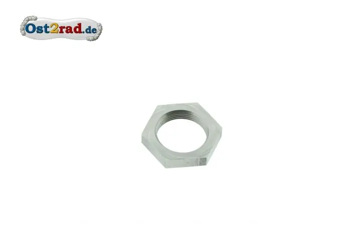 Neue Mutter zum Befestigen des kleinen Kettenrades passend für RT125/2, RT125/3, SR59 Berlin TR150 Troll, ES 125, ES150, ETS125, ETS150, TS125 und TS150. Gewinde M20x1 links, aus Stahl , blank.