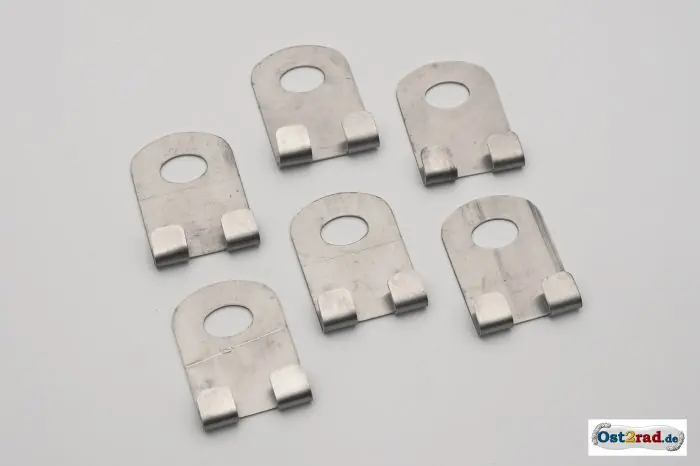 Neues Set Lederhaltebleche aus Edelstahl. Bestehend aus 6 Stück, passend für den Stoye Seitenwagen.