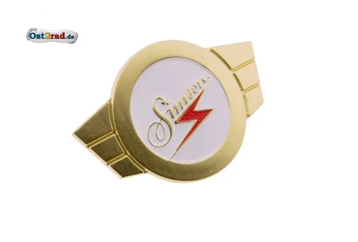 Neues Abzeichen, Emblem zur Anbringung an der Lenkerabdeckung passend für SIMSON Schwalbe KR51/1, Schwalbe KR51/2, Star SR4-2, Sperber SR4-3, Habicht SR4-4. Simson Logo in gold.