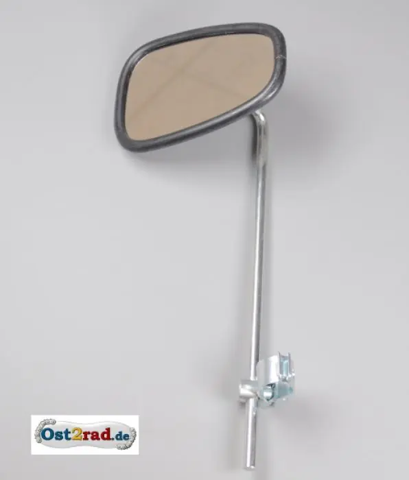 Rückspiegel, passend für Jawa Typ 634 für die linke Seite. Universal passend für Lenker mit 20 – 24 mm Durchmesser, inkusive Halteschelle.