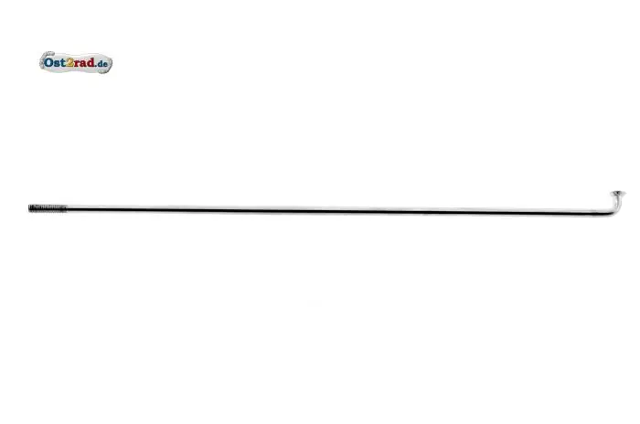 Speiche M4, 220 mm lang. 1. Qualität, verchromt . Diese Speiche wurde z.B. beim Halbnaben- Vorderrad der AWO eingesetzt. Vorwiegend wurde die Speiche im Vorderrad AWO Touren verbaut. Die Speiche ist im rechten Winkel gekröpft.