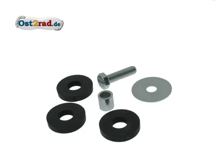 Ein Set neue Auflagegummis für Tankbefestigung hinten passend für SIMSON S51, S50 und S70. In diesem Satz sind 3 Lagergummi, 1x Schraube, 1x Scheibe M10 und Distanzrohr enthalten.