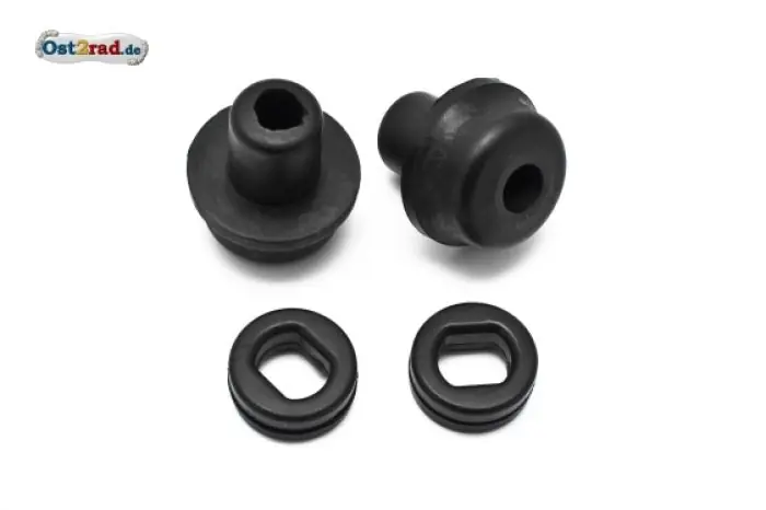 Neuer Satz Auflagegummis für Kraftstoffbehälter passend für MZ ES125, ES150, ES 175/2, ES 250/2 und ETS 250. Lieferumfang: 2x Lagerstopfen Kraftstoffbehälter, 2x Gummipolster hinten