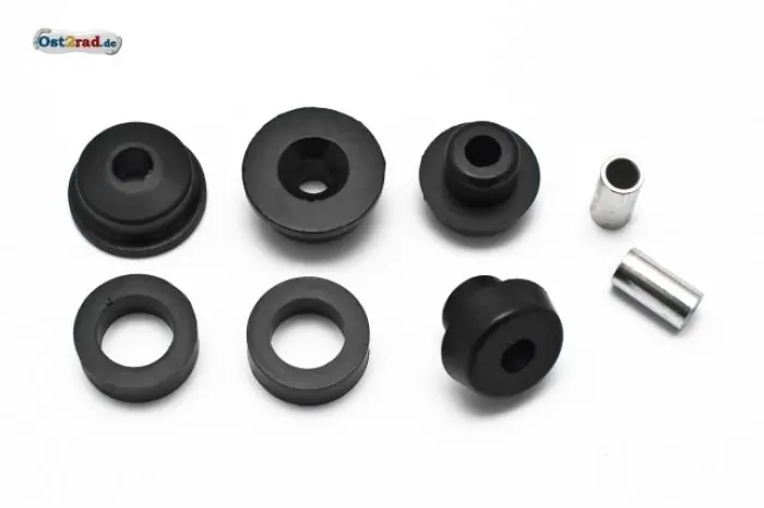 Neuer Satz Auflagegummis für Kraftstoffbehälter passend für MZ TS125 und TS150. Lieferumfang: 2x Auflagekörper vorn, 2x Lagergummi, 2x Lagerstopfen hinten, 2x Distanzhülse
