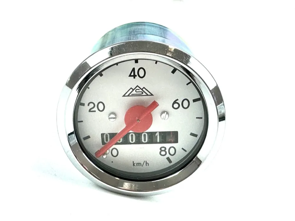 Tacho, weißes Ziffernblatt, 48mm Einbaudurchmesser, 80 km/h Ausführung, Tachometer mit Beleuchtungsanschluß