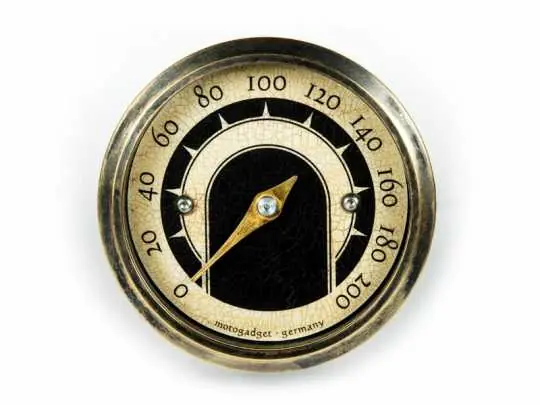 Das mst vintage ist ein kleiner, analoger Tacho mit Messingring im attraktiven Old-School-Look.