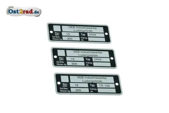 Neues Typenschild passend für alle IWL, Berliner Roller SR59, Wiesel SR56, Troll TR150 und Pitty.