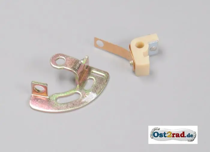 Unterbrecherkontakt bestehend aus Kontakt und Kontaktplatte. Komplett fertig zum Einbau. Für alle Lichtmaschinen mit 45W bei den Typen RT 125/1, RT 125/2, IWL Pitty, Wiesel.