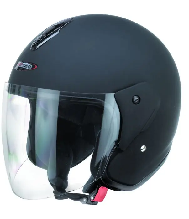Neuer Moped- und Motorradhelm aus ABS in matt schwarz. Dieser Helm ist gefüttert. Guter Tragekomfort. Der Helm ist mit kratzfestem, klarem Visier aus Plastik. Das Visier ist auswechselbar.